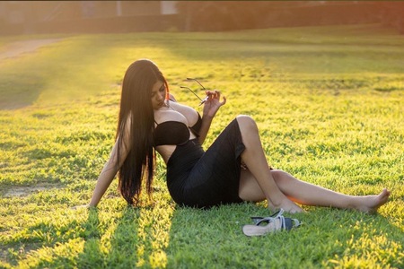 Haare:schwarz, rückenlang